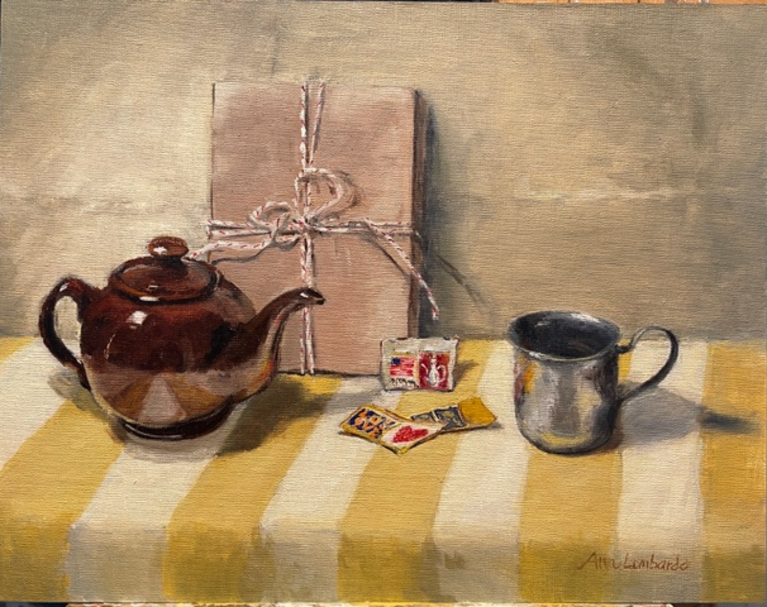 The exhibition features 36 original works, ranging from intimate framed pieces to expansive canvases, exploring themes of landscapes, interiors, and tablescapes. The collection reflects Lombardo’s decades-long study of representational oil painting and marks her fourth annual summer solo show.