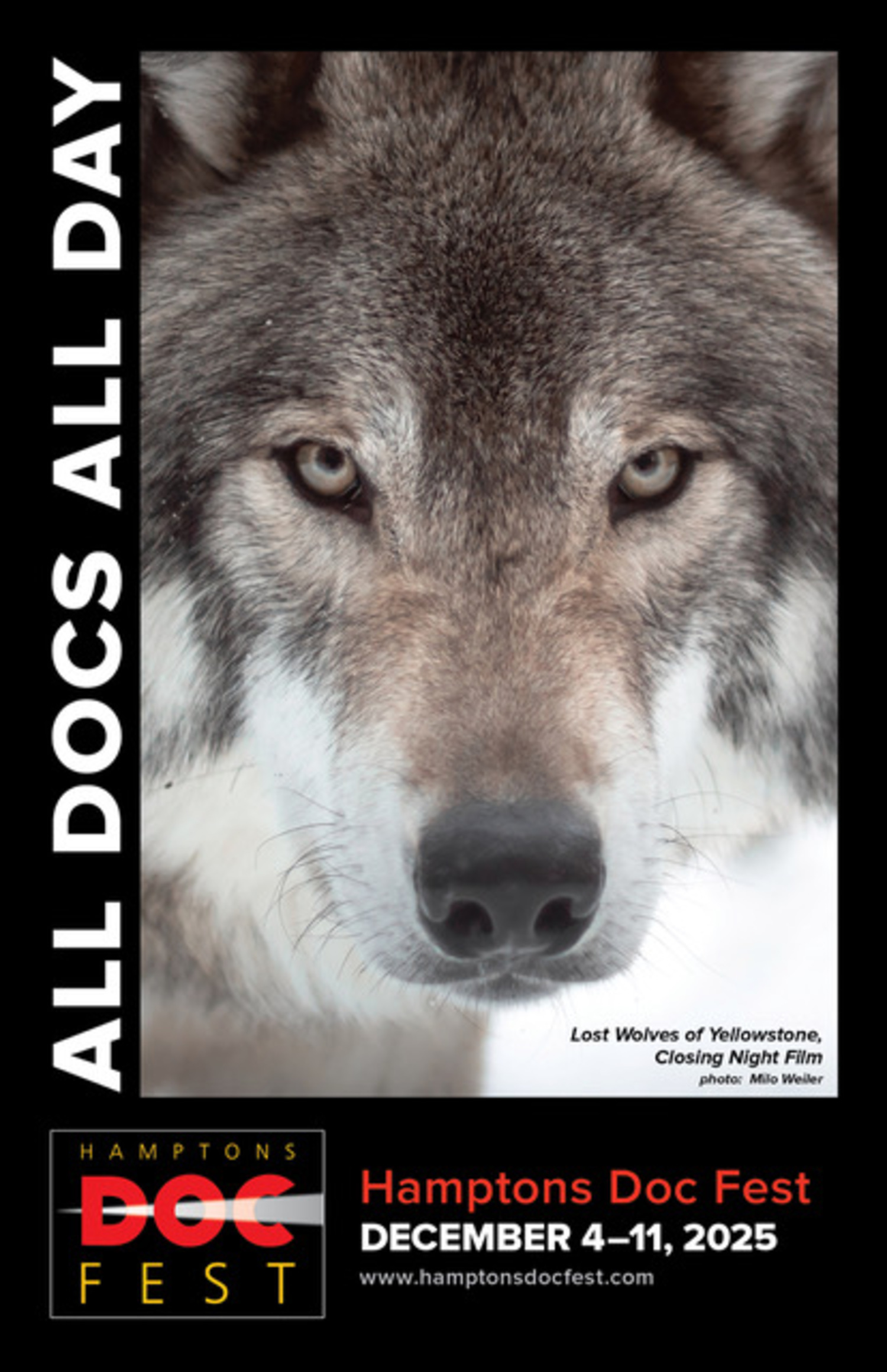 “I chose the image of the grey wolf for the program cover partly because it’s the star of our closing night film and because it personifies intelligence and resistance,” says Hamptons Doc Fest founder and executive director Jacqui Lofaro. “No matter how long they were the target of destruction, they survived to thrill us for another day.”