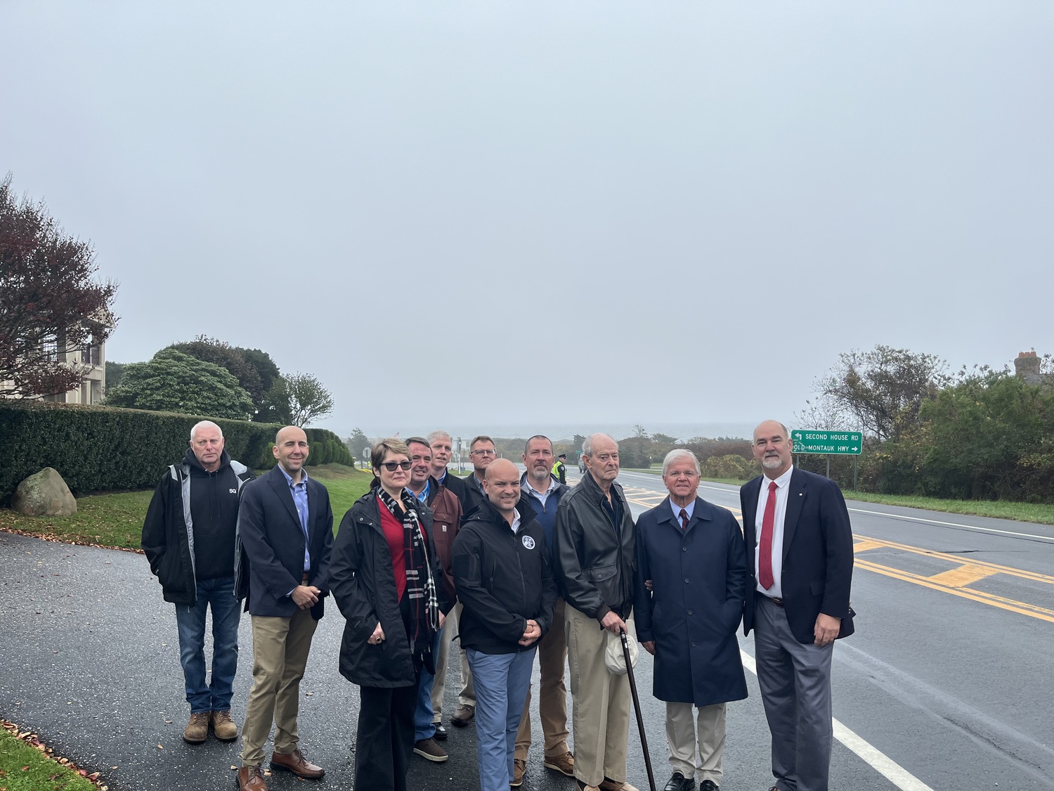State Assemblyman Fred W. Thiele Jr., Montauk resident John Keeshan, East Hampton Town officials and representatives of Verizon, PSEG Long Island and LK McLean Engineering, gathered on Old Montauk Highway this week to celebrate the completion of the “Montauk Gateway” work that directed more than $830,000 in state, local and private money to bury power lines, remove utility poles and other equipment, and beautify the stretch of road leading into downtown Montauk. The project was originally envisioned by Keeshan, and was helped by a $250,000 grant from the state and a $200,000 gift from Montauk resident Dan Cahill.