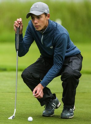 East Hampton's Turner Foster is the returning county champion. NICHOLAS SERRATA East Hampton's Turner Foster removes the chip from the ball on the 6th green during Round 1 of the NYSPHSAA at Robert Trent Jones Golf Course in Ithaca, NY. Nck Serrata - The East Hampton/Southampton Press