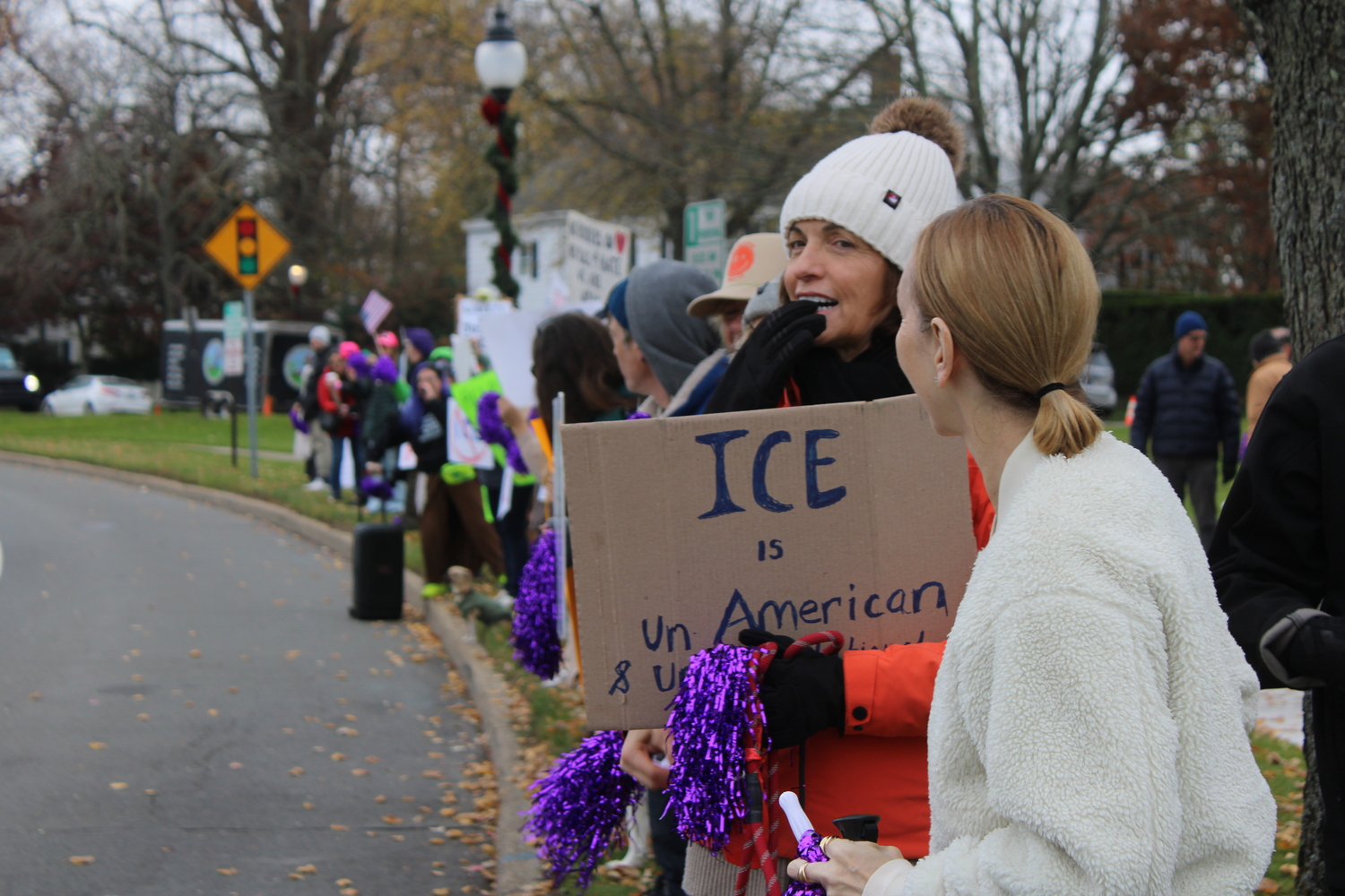 The latest demonstration over the presence of ICE on the East End took place at Hook Mill in East Hampton. JACK MOTZ