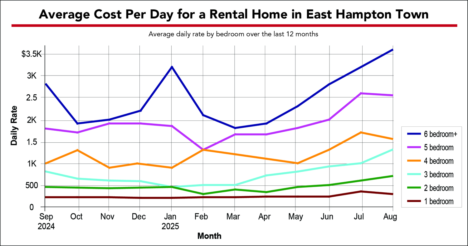 Average cost per day of a rental home in East Hampton Town.