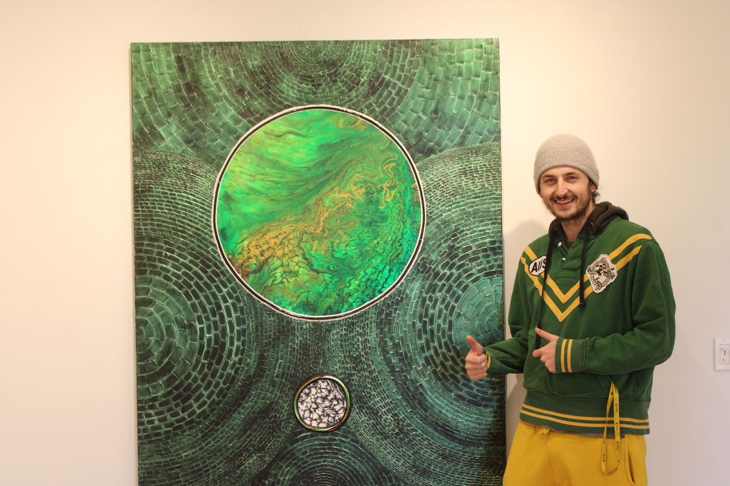 Chris Lucore with a piece he planned to hang in a window. JACK MOTZ