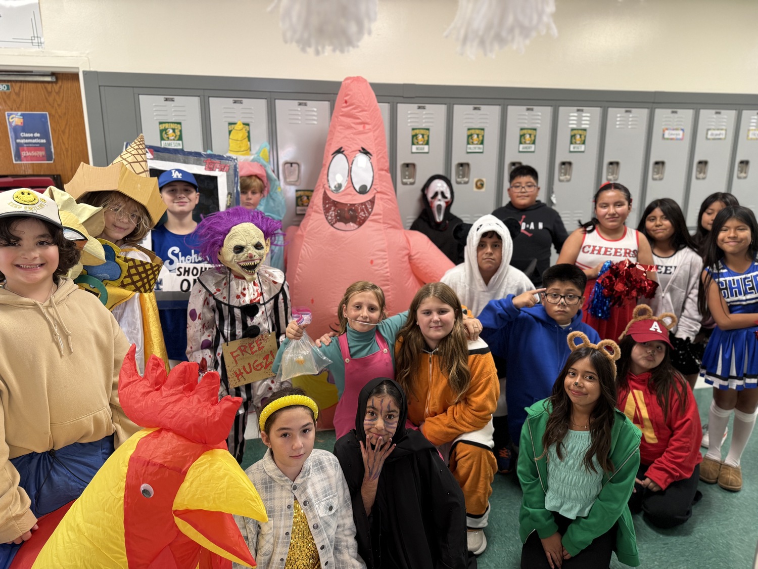 Elementary students in Springs School are ready and eager to head out to the bus loop for the Halloween Parade.