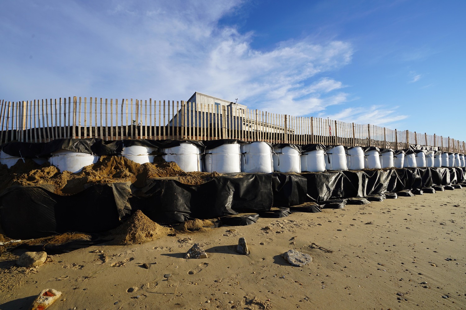 Since 2018, a Napeague homeowner has protected his house with controversial GeoCubes, which have blocked beach access for neighbors. The East Hampton Town Building Department recently signed off on the installation of new ones. DOUG KUNTZ