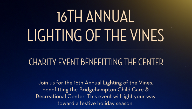 Join us for the 16th Annual Lighting of the Vines, benefitting the Bridgehampton Child Care & Recreational Center. This event will light your way toward a festive holiday season!