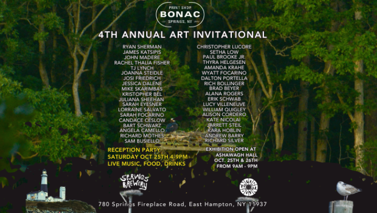 Springs, New York – 10/25/25 - 4-9pm – Bonac Print Shop is hosting its annual art Invitational with a reception party for local artists, showcasing their works at Ashawagh Hallin Springs. A native of Springs, Ryan Sherman of Three Mile Media has curated over 45 East End artists that will display new original artworks in exhibition alongside an eclectic print shop. Established artists such as Lucy Villeneuve, William Quigley, Sarah Eyesner, Joanna Steidle, Candace Ceslow, James Katsipis, Dalton Portella, and Kara Hoblin will be showcasing their work.