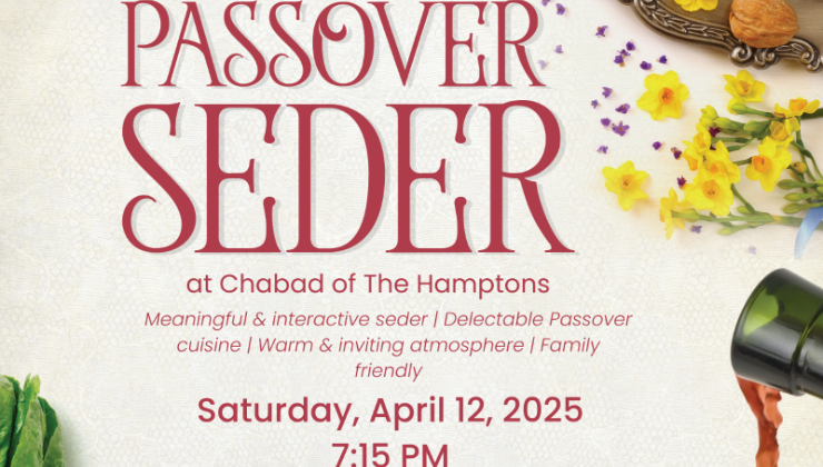 Monday, April 12 - 7:15pm at Chabad of the Hamptons.