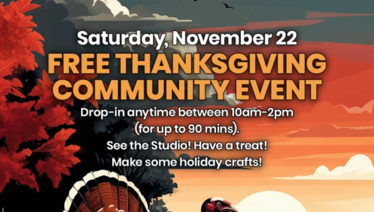 Free Community Event! Drop in anytime between 10am and 2pm for up to a 90-minute increment to check out the space, bring a friend, have a treat, make some art. Please note in your registration your approximate arrival time so we know when to expect you.