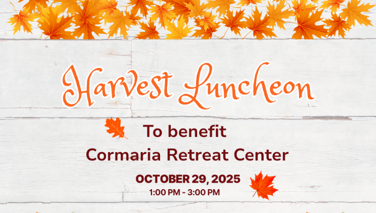 Step into a world of autumnal charm and delightful flavors at Cormaria’s annual fall fundraiser. Join us for a cordial gathering where the crisp air, warm hues of the changing leaves, and the fragrant aromas of the season set the perfect backdrop. Harvest Luncheon guests will enjoy a thoughtfully prepared menu by Chef George Hirsch. Come celebrate the joys of autumn and connect with friends in support of Cormaria Retreat Center.
