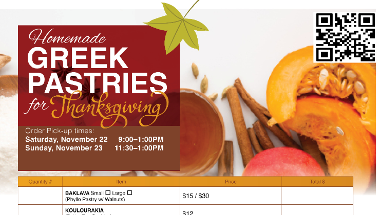 Orders can be picked up at the Dormition of the Virgin Mary Greek Orthodox Cathedral of the Hamptons and at the designated Bake Sale Stations above from 9:00AM-1:00PM. Orders on November 23, can be picked up only at the Cathedral.