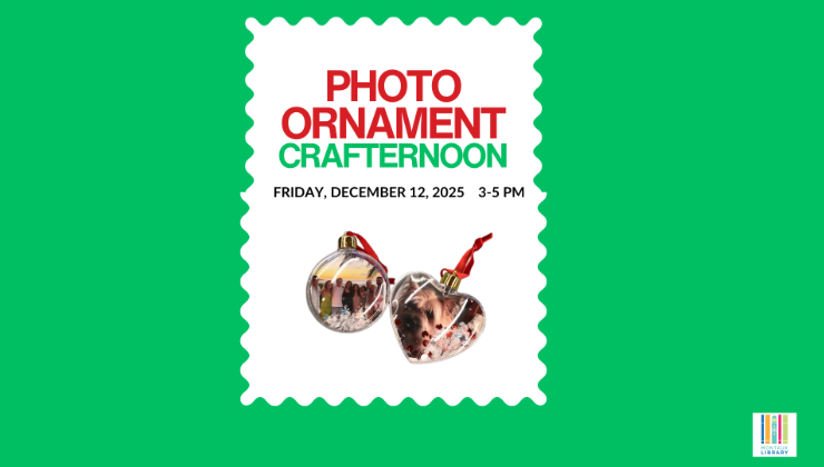 Each participant will take home two photo ornaments. Sign up online and drop in anytime between 3 and 5 pm. Limited to 25 participants. Registration is required.