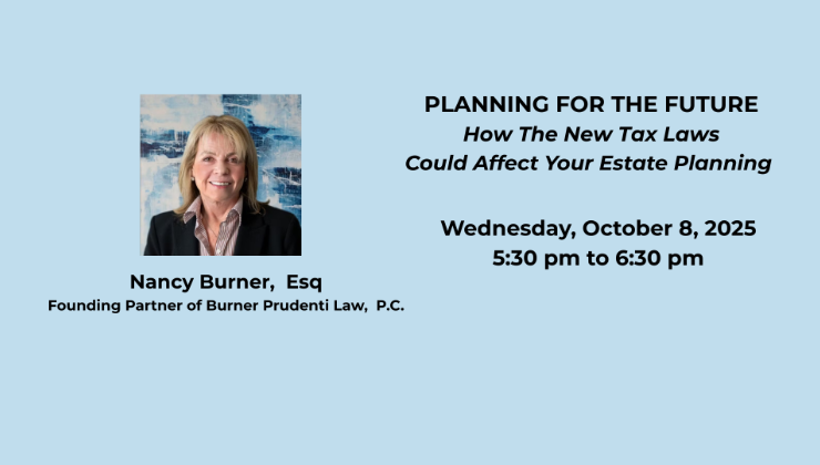 Join Nancy Burner, founding partner of Burner Prudenti Law, P.C., for an overview of the key documents every estate plan should include, plus a look at how recent changes to the estate tax code could affect your planning decisions.
