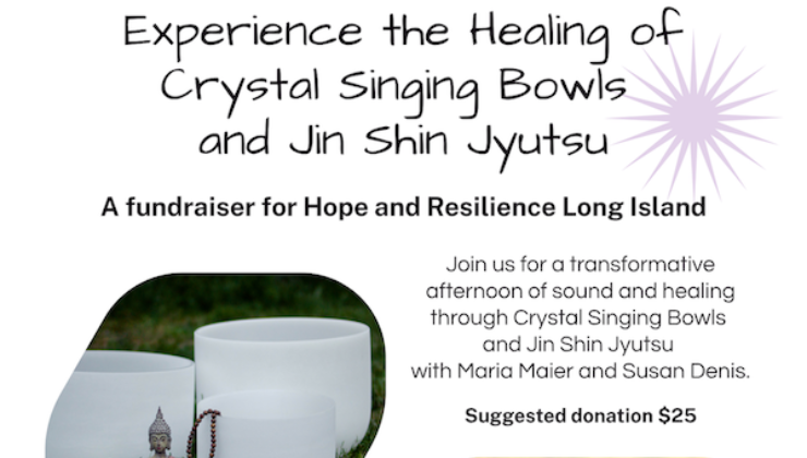 Join us for a transformative afternoon of relaxation & rejuvenation & good health through Crystal Singing Bowls and Jin Shin Jyutsu. Jin Shin Jyutsu uses gentle touch to restore the body’s natural energy flow. Crystal singing bowls create calming sounds & healing vibrations to promote a peaceful state & support the body’s natural healing ability. These complementary modalities will relax & rejuvenate your body, mind & spirit. Maria Maier & Susan Remkus Denis.