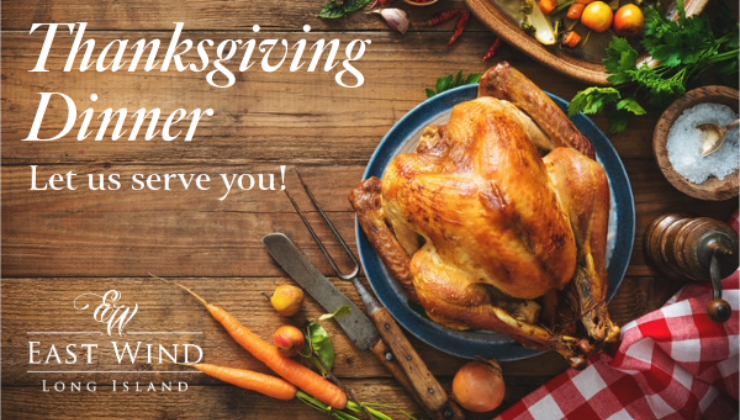 Enjoy a memorable, hassle-free and safe holiday dinner with us in our Grand Ballroom at East Wind. We serve a full Thanksgiving Dinner Buffet with turkey, all the fixings and more, while you relax and enjoy time with your family and friends. We take care of all the prep and clean-up. CLICK HERE FOR FULL MENU