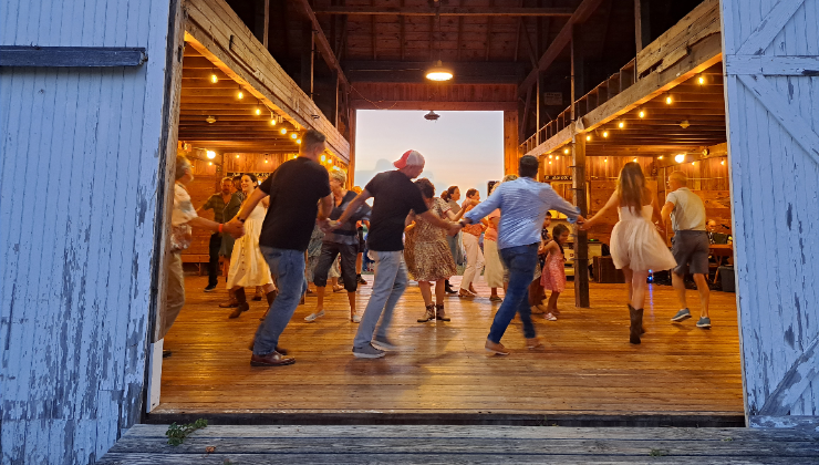 BREAK OUT YOUR DANCING BOOTS FOR OUR SUMMER COUNTRY BARN DANCE at Hallockville Museum Farm! Join us Saturday July 26th 5pm to 8:30 pm in the Historic Naugles Barn. Kick up your heels at this family-friendly event with live music and traditional dancing led by famed caller Chart Guthrie! We invite you to bring your own chairs and blankets and enjoy the beautiful North Fork sunset before dancing the night away in the recently restored Naugles Barn.Gates open at 5 p.m. and dancing is from 6:30-8:30 p.m.Delicious food will be available for purchase from Beleza BBQ Food Truck. Corn hole games, too! Advanced registration is required. The cost of this event is $35 for ages 13 and up, $10 ages 5-12 and Children under 5 are free. For more information or to register visit www.Hallockville.org.