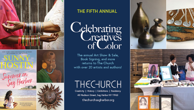 The 5th Annual Celebrating Creatives of Color returns and for the second time will be hosted at The Church. The event will showcase creative artists and authors of color from Sag Harbor and beyond, and provides an opportunity for artists and authors to display their work and interact with other art enthusiasts and collectors. All artwork and books will be for sale.