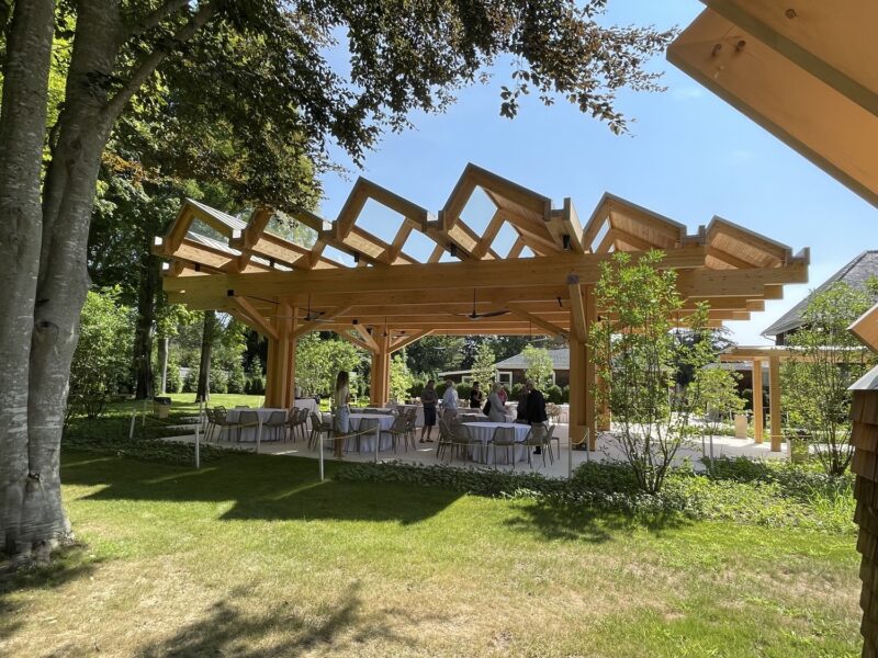 The Dattner pavilion, although quite different from Jaffe’s sanctuary, is both thoughtful and complementary to the Gates of the Grove.