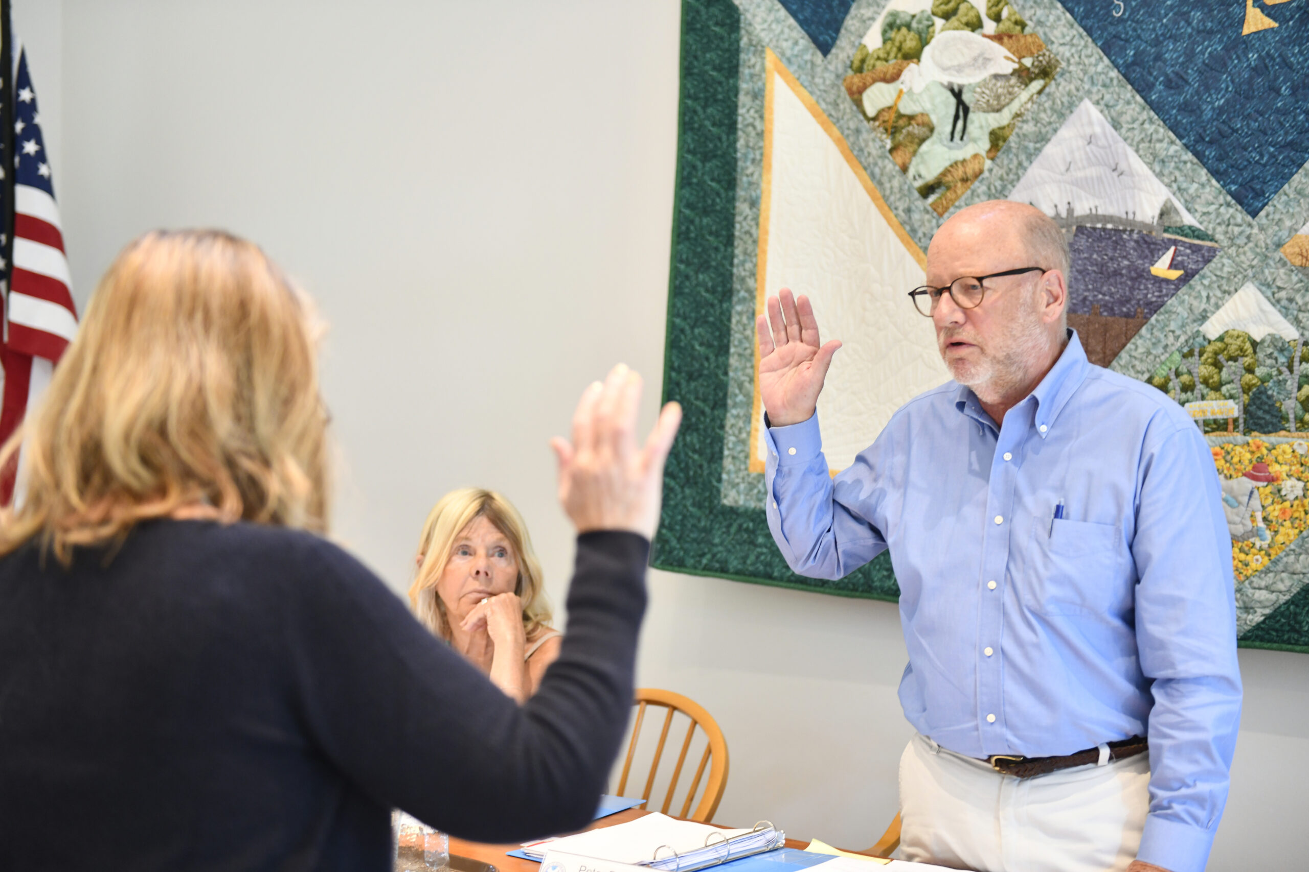 Peter Boody is sworn in at the North Haven Village Board meeting on Tuesday. DANA SHAW