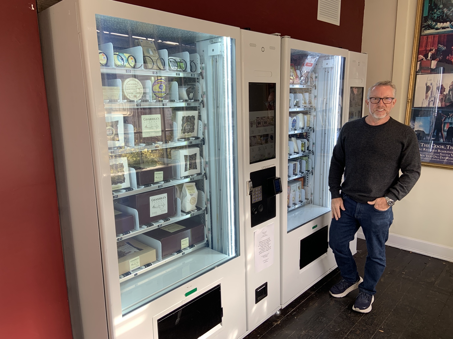 Michael Cavaniola has installed vending machines offering gourmet treats at his Sag Harbor cheese shop. STEPHEN J. KOTZ