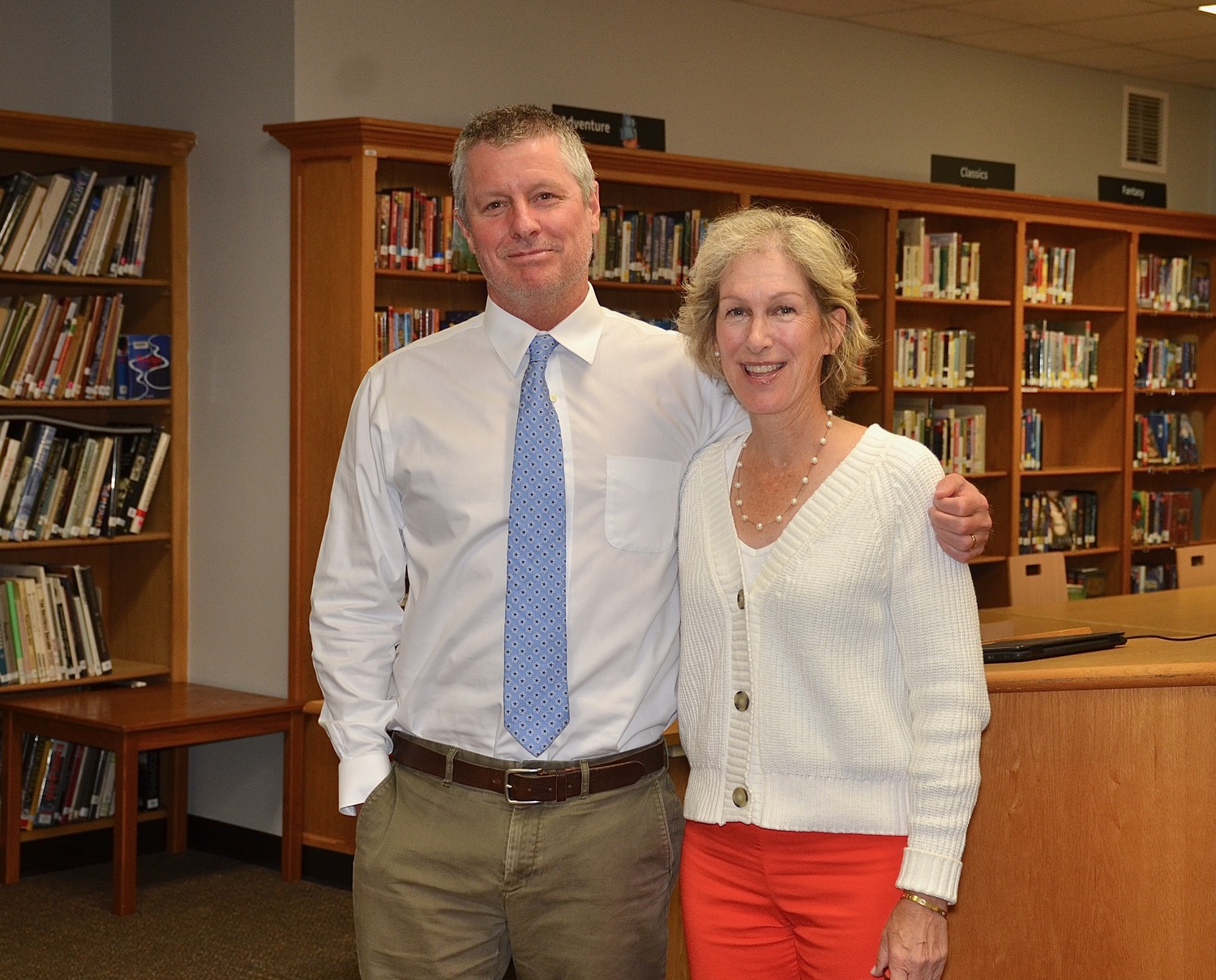 Sag Harbor Schools Superintendent Jeff Nichols with longtime district clerk Mary Adamczyk, who is retiring. KYRIL BROMLEY