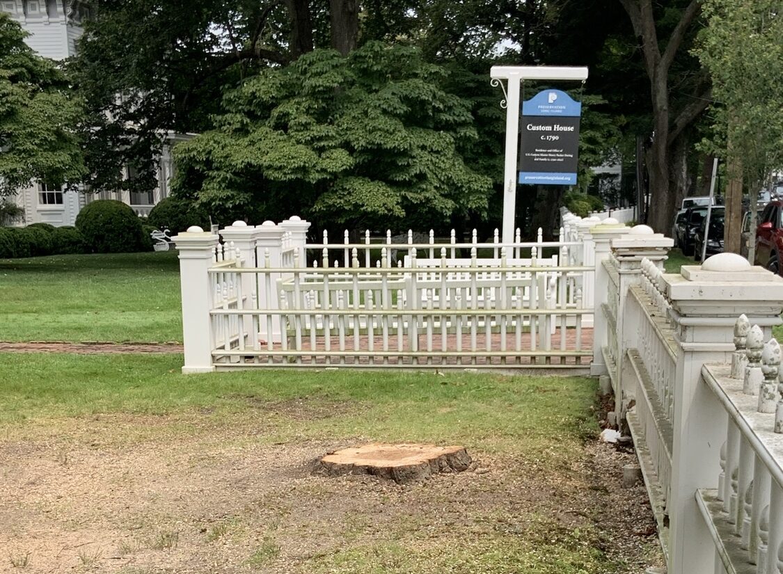 The removal of a tree near the front fence of the Custom House had some residents raising the alarm, but Preservation Long Island, which owns the property, and Sag Harbor Village, say the tree was diseased and the proper process was followed. STEPHEN J. KOTZ