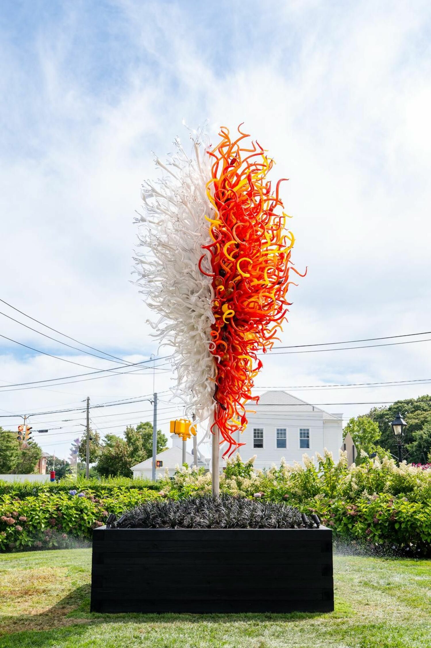 The Children's Holocaust Memorial Tower, created by Dale Chihuly, is dedicated to 1.5 million Jewish children who were murdered during the genocide. COURTESY THE HAMPTON SYNAGOGUE