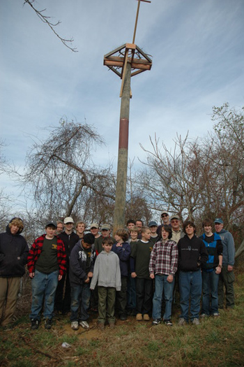 A group of more than a dozen Boy Scouts from Troop 58 in Southampton seemed to be having a great time when I swung by their campsite near Kellis Pond on Saturday morning. Led by Scoutmasters Tac Hostetter, Tim Behringer, Thom Speckenbach and Bob Howard, with a helping hand from Brad Allen of Long Island Crane, the group was busy assembling a new osprey platform that they erected alongside the pond. Let’s hope it finds some suitable tenants come springtime.