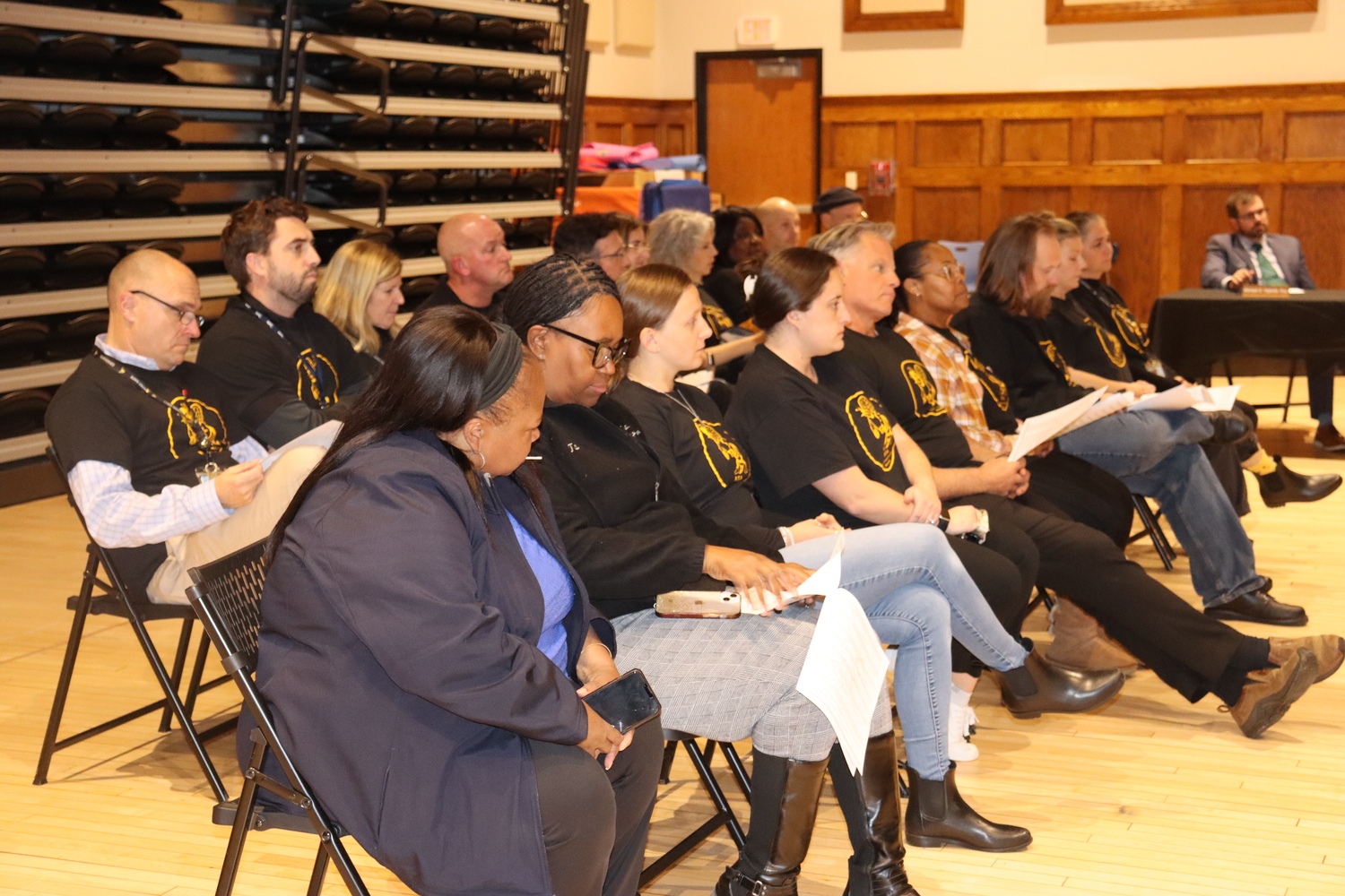 Members of the Bridgehampton Teachers Association showed up en masse at the Bridgehampton School Board Meeting on Wednesday night. They have been working without a contract since July 1. CAILIN RILEY