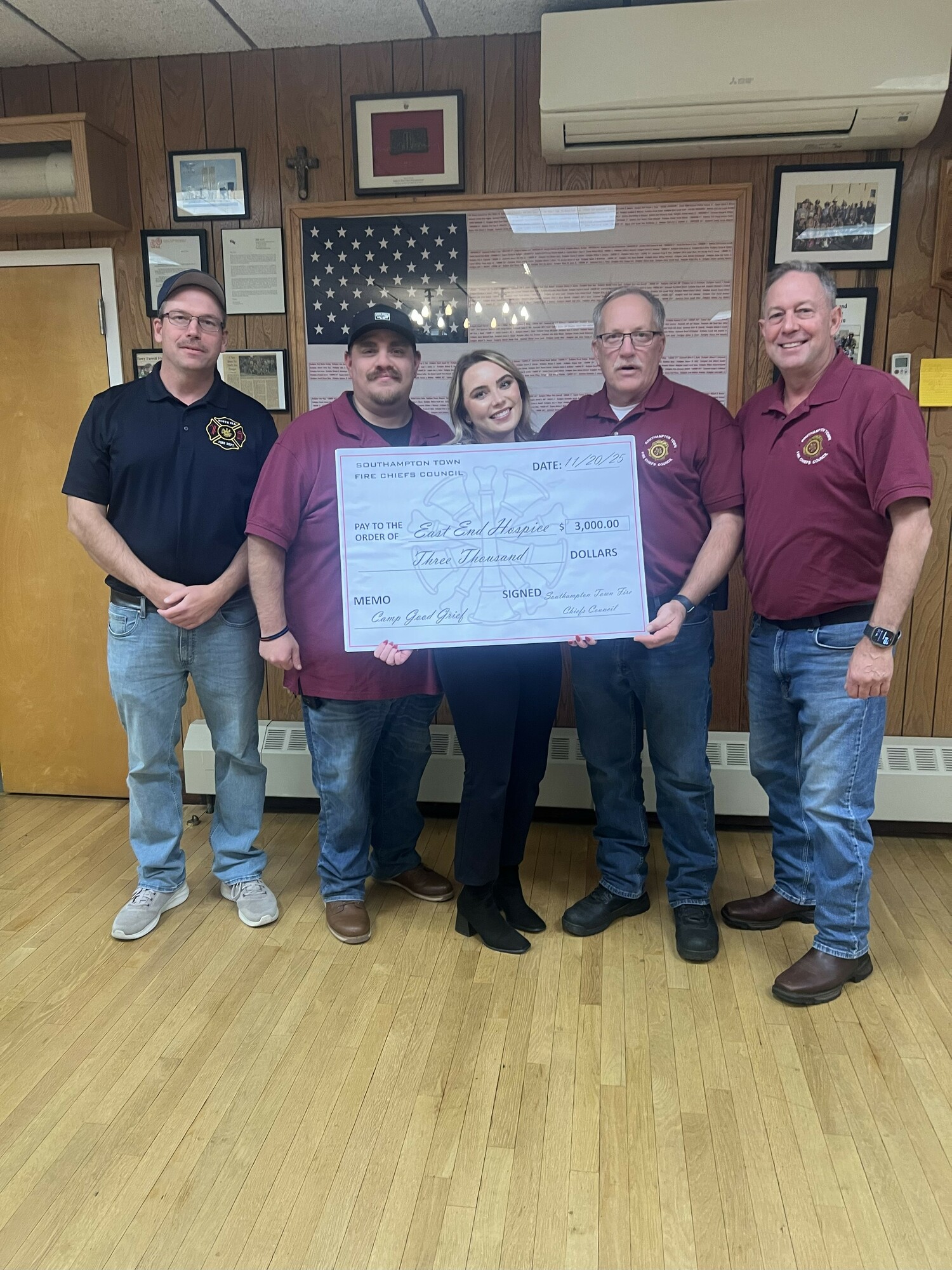 The Southampton Town Fire Chiefs Council presented a $3,000 donation to East End Hospice’s Camp Good Grief program at its November meeting. The contribution comes from the proceeds of the...