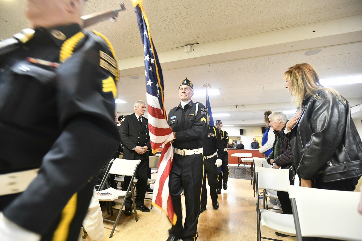 The Honor Guard enters the room at the Veterans Day ceremony at the Hampton Bays American Legion on Tuesday.
