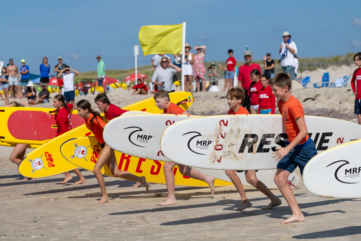 Junior lifeguards at the start of the rescue board relay. RON ESPOSITO