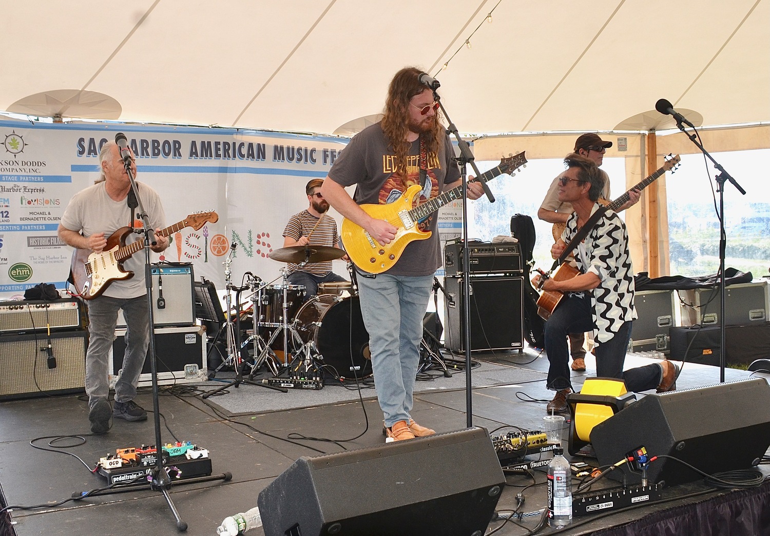 Joe Delia onstage with Nancy Atlas on Sunday afternoon in Marine Park. GAVIN MENU
