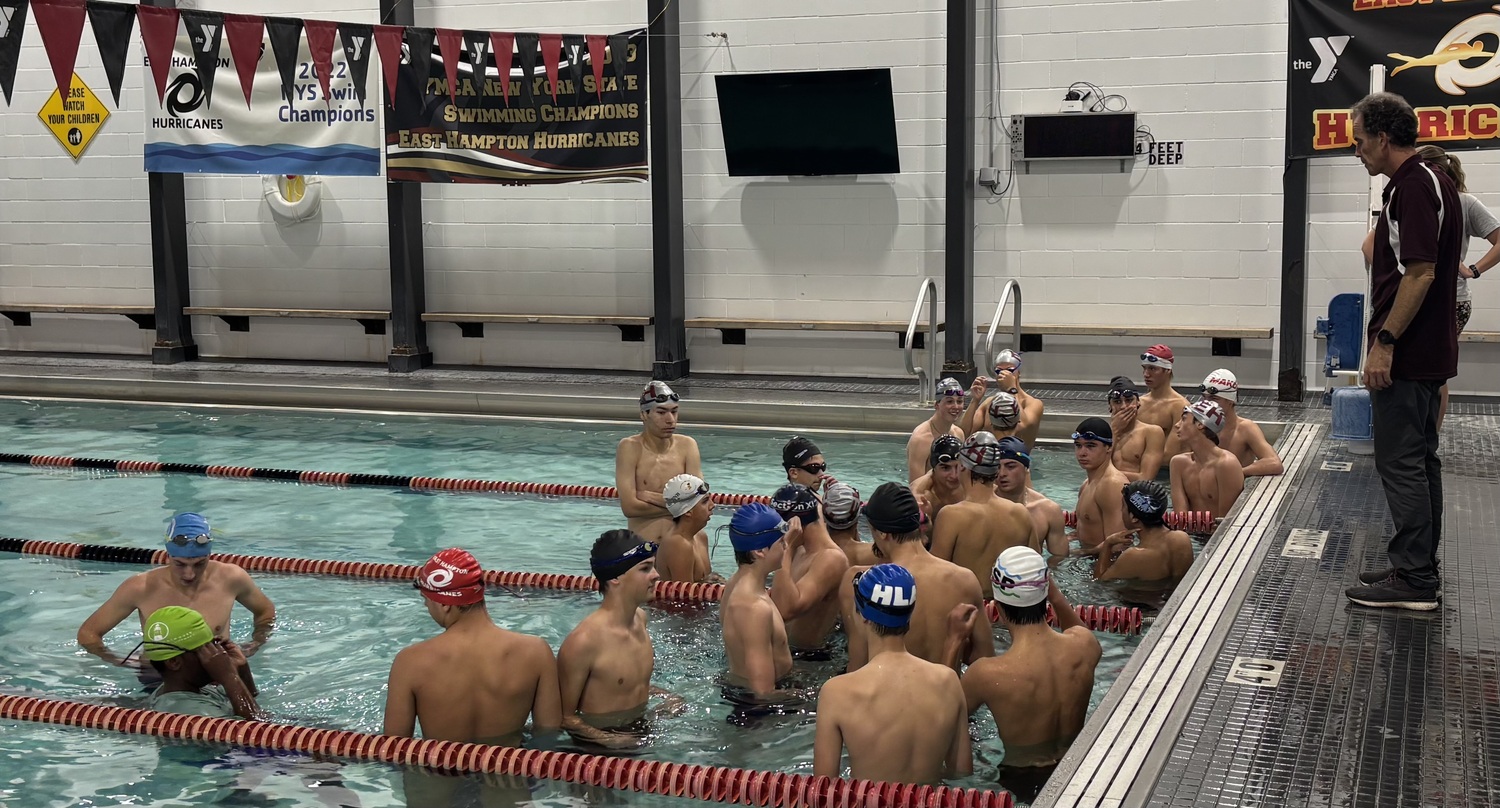 The East Hampton/Pierson/Southampton boys swim team on the first day of practice on November 17. JACK GRAVES