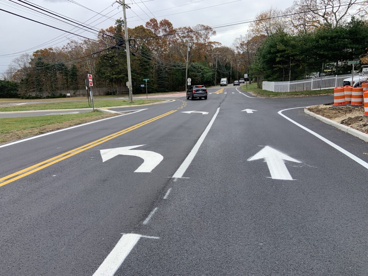 The Southampton Town Highway Department recently added a left-turn lane on Noyac Road at Long Beach Road as part of a series of improvements it is doing along Noyac Road. STEPHEN J. KOTZ