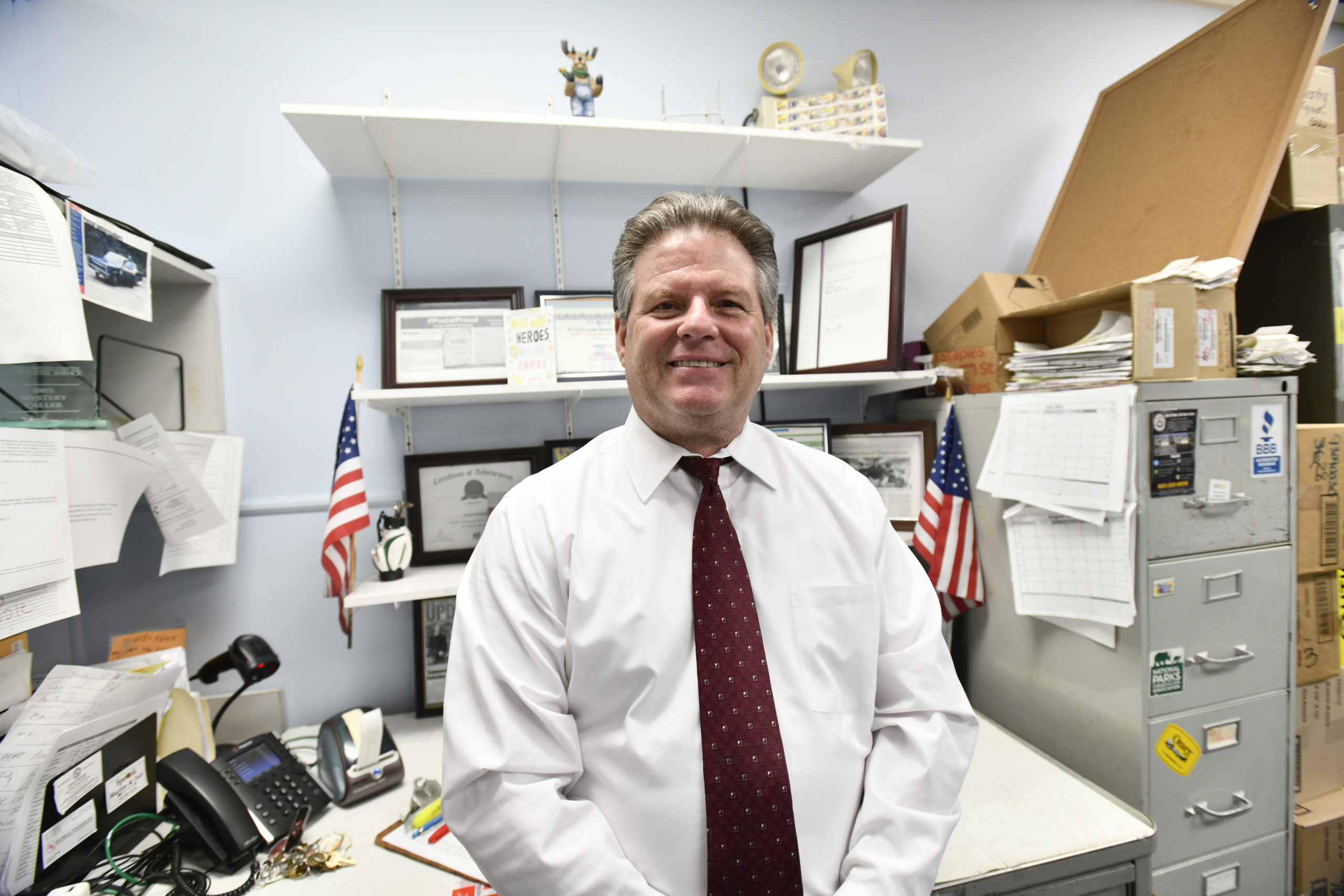For now, he’s still in the post office each morning, doors open at 8 a.m. sharp.