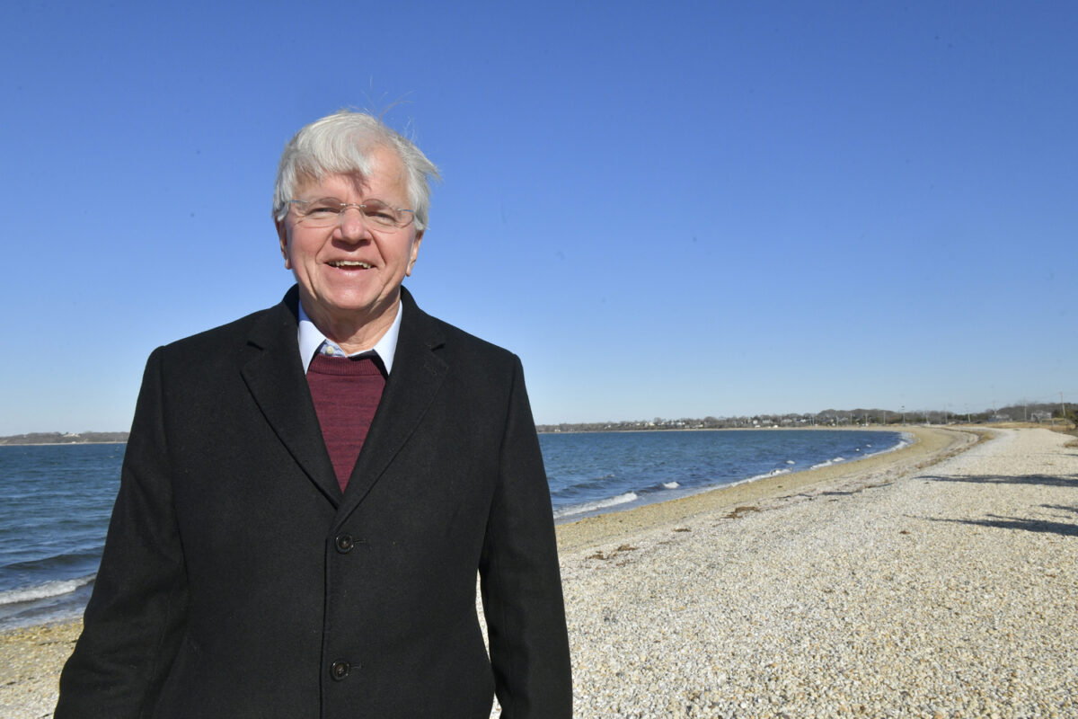 Fred W. Thiele Jr. on Long Beach in Sag Harbor on a blustery December day. DANA SHAW