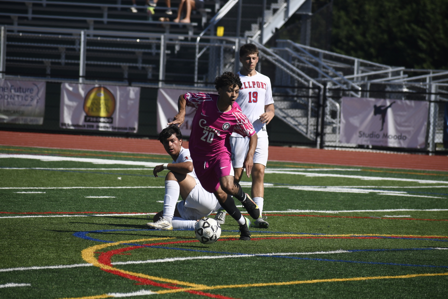 Westhampton Beach senior Angelo Melendez scored the first goal of the game on Saturday afternoon. DREW BUDD