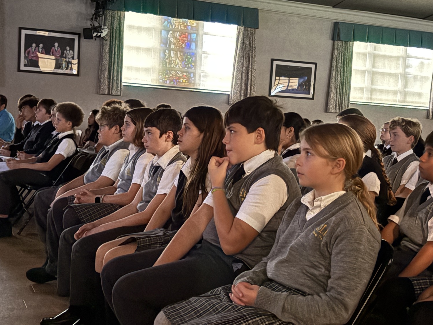 Pope Leo XIV, the first-ever American pope, addressed a group of more than 16,000 teens at the National Catholic Youth Conference in Indianapolis on November 21. Students from Our Lady of the Hamptons tuned in for the livestream. CAILIN RILEY