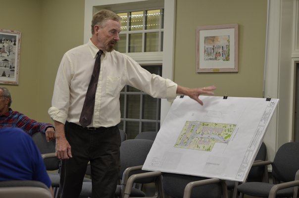 Architect Donald Kolacki presenting a proposal for the development of 16 senior town homes off Old Riverhead Road in Westhampton Beach. ANISAH ABDULLAH